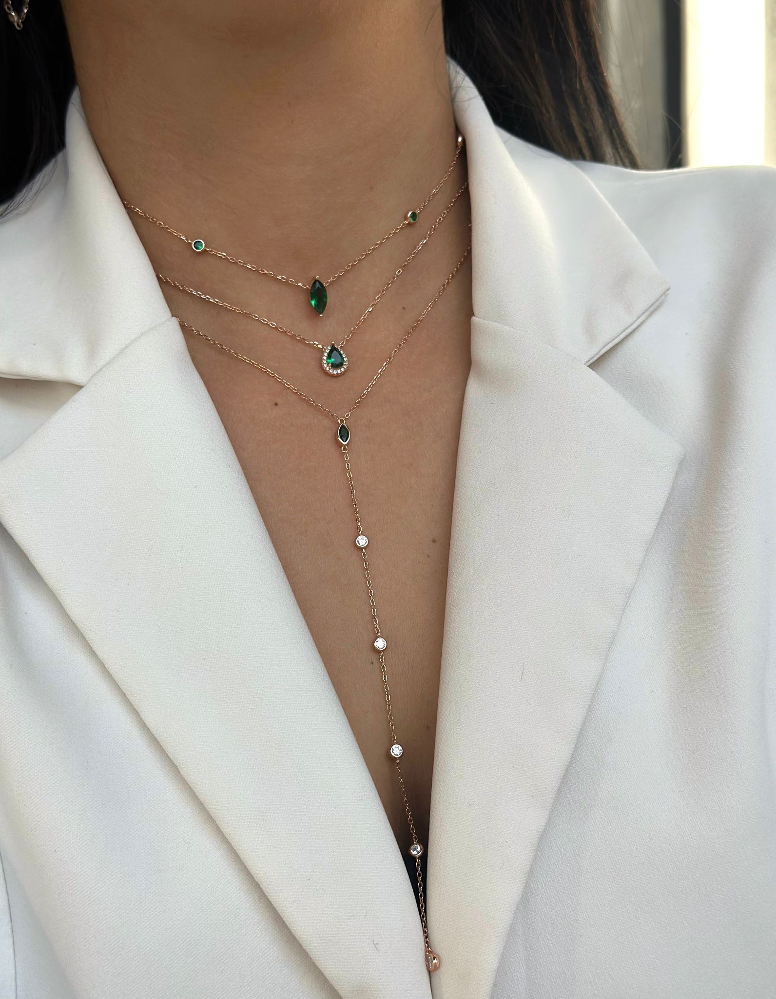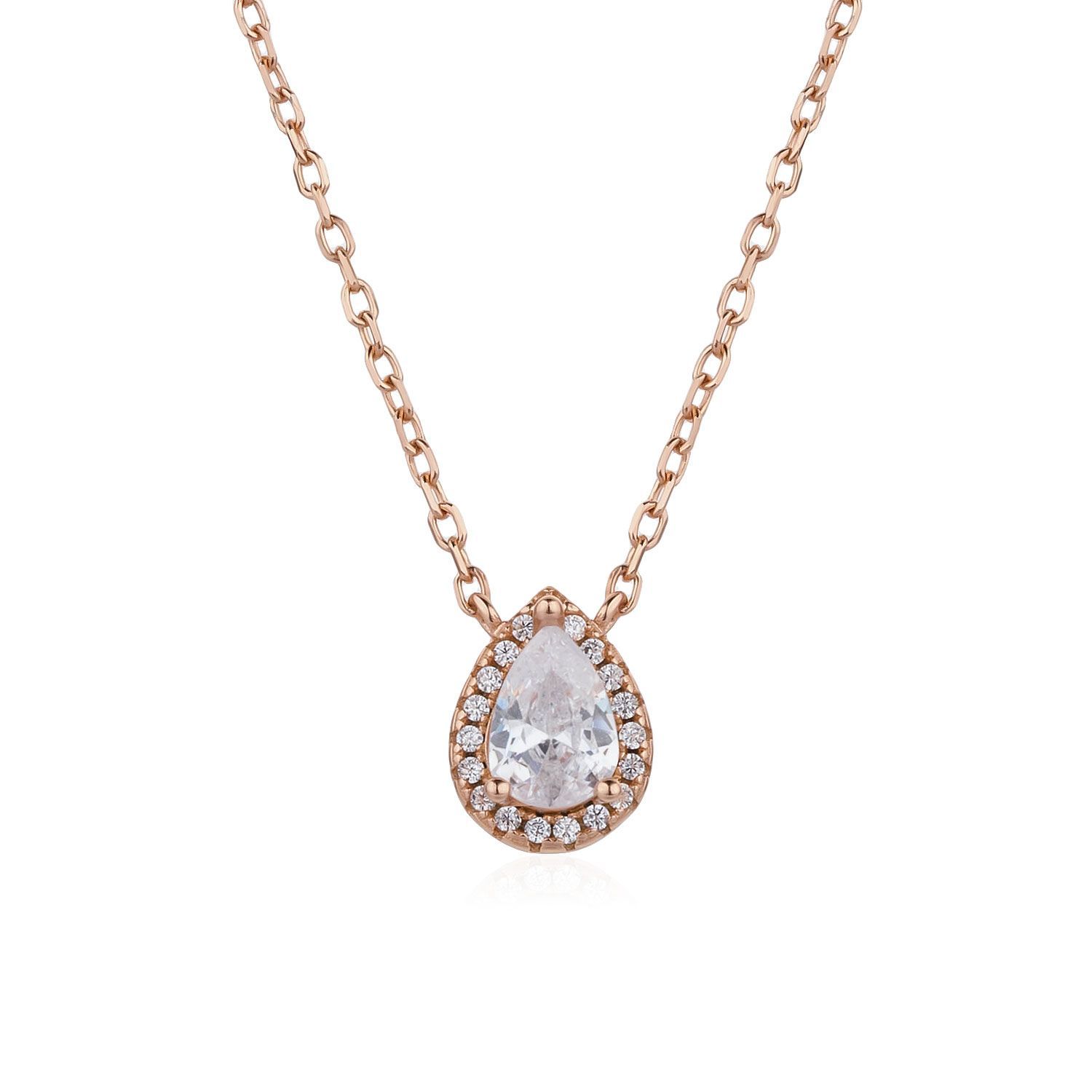השרשרת הזו מציגה תליון בצורת טיפה משובצת באבני זרקון נוצצות, בציפוי זהב אדום (רוז גולד) שמעניק לה חמימות אלגנטית.